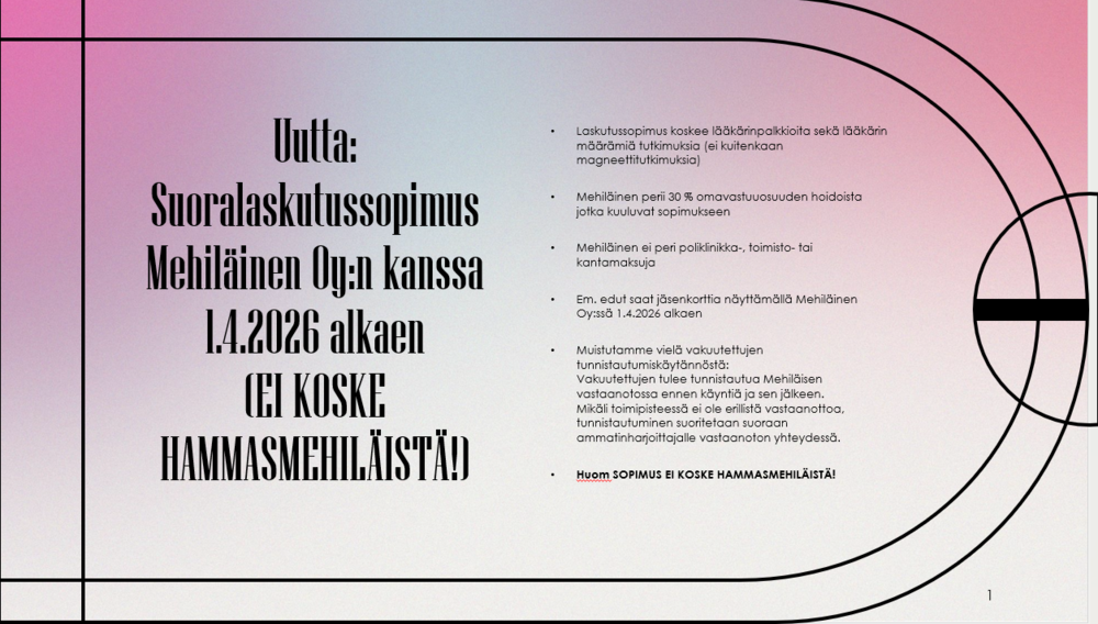 Otanmäen sairauskassa on suljettuna 23.4.2026 - 5.5.2026.